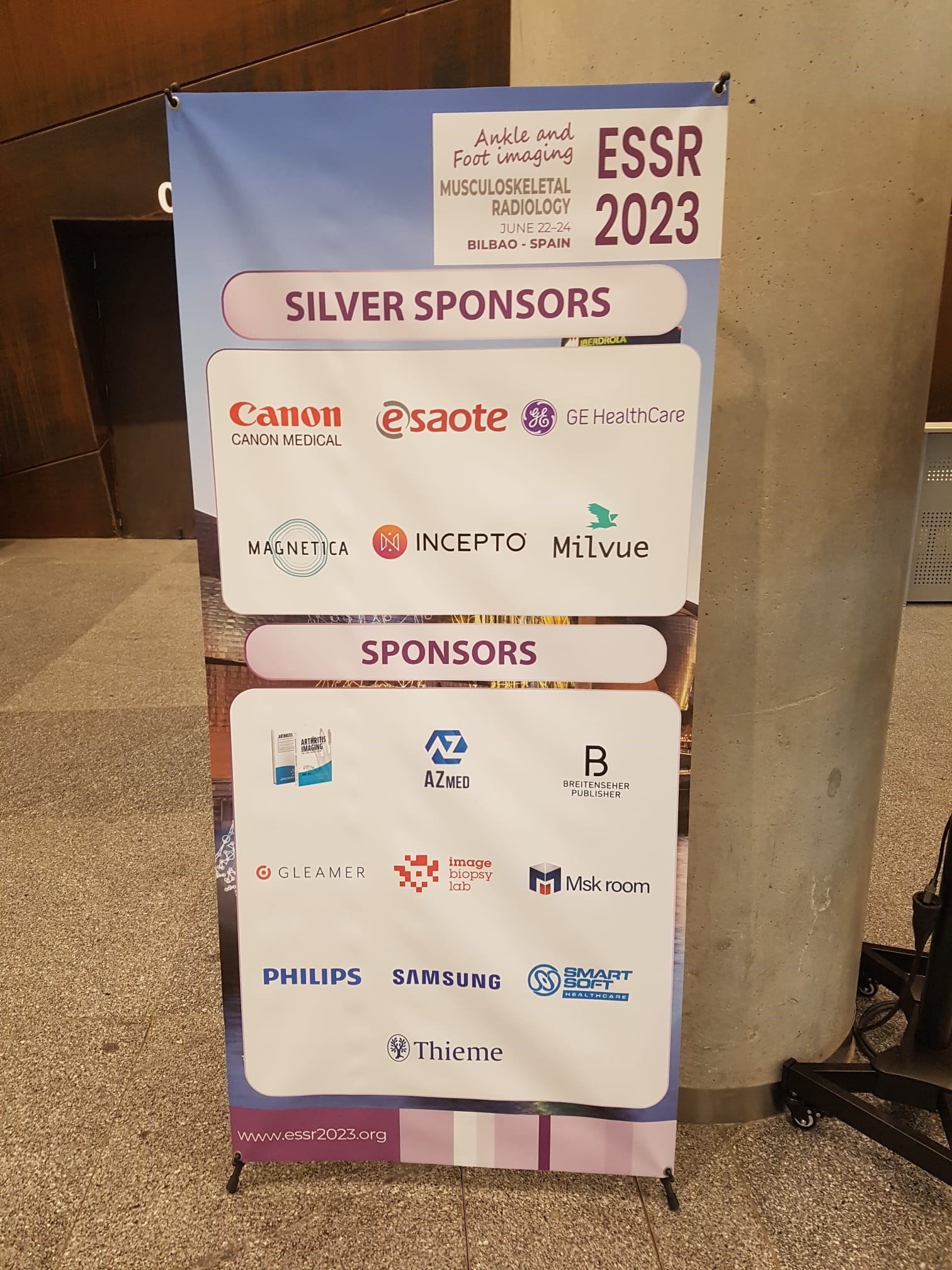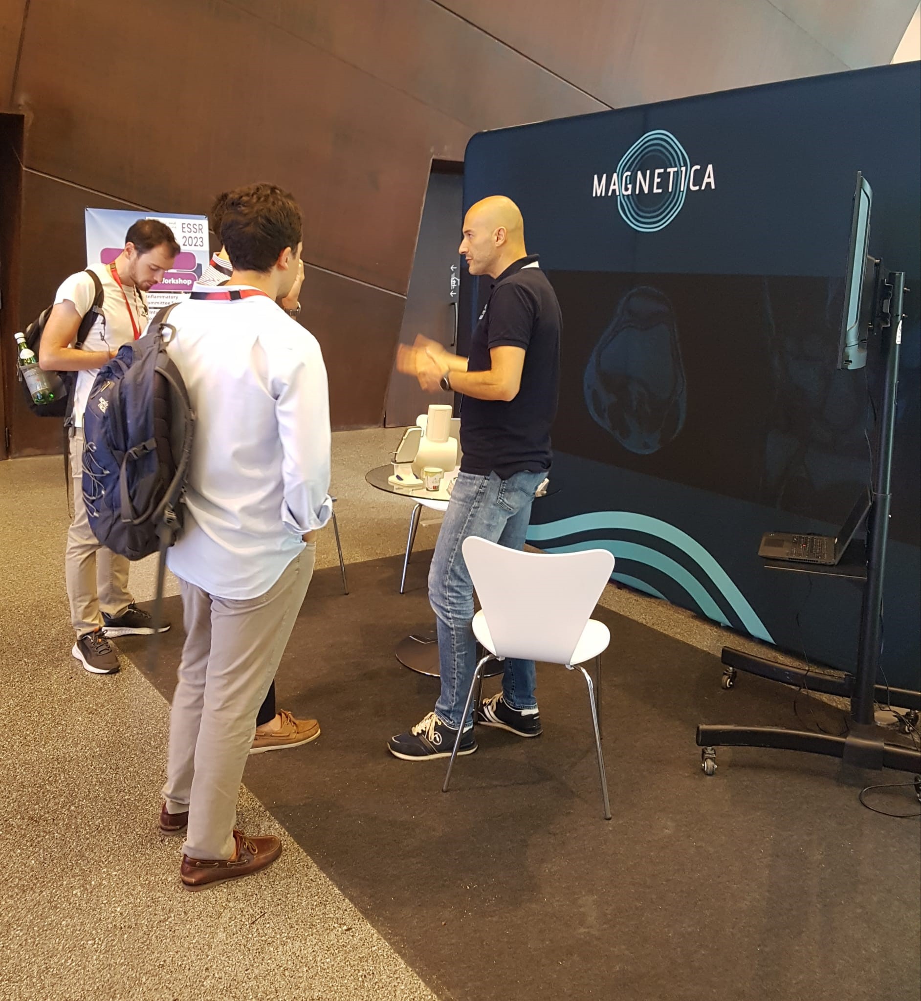 We sponsored and exhibited for the first time at the 30th ESSR (European Society of Musculoskeletal Radiology) Annual Scientific Meeting in late June. Held in Bilbao, Biscay in Spain, from the 22nd to the 24th, the meeting was well attended. There was lots of interest in our prototype MSK (musculoskeletal) extremity MRI system, that we are working to finish commercialising as soon as practical. Our team members attending the event, Antonio Augello and Dr. Peter Penfold, really enjoyed getting to meet so many new people.